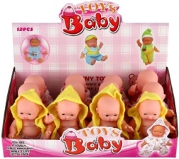 Roztomilé miminko panenka o výšce 12 cm s pevným plastovým tělíčkem a textilním oblečkem potěší každého malého pečovatele. Nabízí 3 různé druhy, podporuje fantazii a hraní rolí a je vhodná od 3 let. V praktickém displej boxu po 12 kusech.