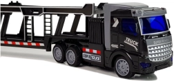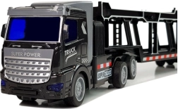 Tato detailně zpracovaná odtahová souprava přináší dětem autentický zážitek z řízení tahače s návěsem na přepravu aut. Robustní zpracování z kvalitních plastů, svítící LED světlomety a snadné ovládání zvyšují zábavu i realističnost hry. Díky kompaktním rozměrům se souprava skvěle vejde na každou trať v dětském pokoji.