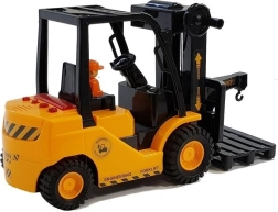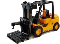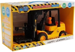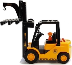 Realistický dětský vysokozdvižný vozík v oranžové barvě nabízí pohyblivé vidle, praktický háček na náklad a interaktivní světelné a zvukové efekty. Díky gumovým kolům je jízda plynulá a stabilní, což podporuje rozvoj motoriky a kreativní hru.