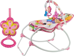 Pohodlné dětské houpátko a sedačka 2v1 v něžném růžovém designu s květinovým motivem potěší miminka od prvních dnů života. Nabízí uklidňující vibrace, přehrávání melodií po zatažení za květinku a odnímatelný oblouk s hračkami pro rozvoj smyslů. Má 2 polohy sklonu, hluboké a pohodlné sedátko, 3bodový bezpečnostní pás a potah pratelný v pračce. Nosnost až 18 kg, roste s dítětem až do cca 3 let.