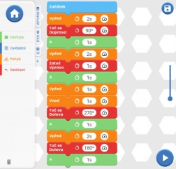 Po sestavení spárujete stavebnici přes díl U33 s aplikací Boffin (Android/iOS) a můžete auto řídit v režimech Command drive, Tank drive a Touch drive. V sekci Programování si nastavíte výstupy (D1/D2/D3/D4/A na díle U3), ovládání, pohyb a zatáčení – určíte, kam a jak dlouho pojede, kolikrát se otočí, jak mají svítit světla a mnoho dalšího.