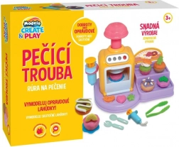 Tato hravá sada kombinuje modelínu, tvořítka a mini „troubu“, která pomocí stisknutí páčky vytlačí a „upeče“ vaše výtvory. Děti mohou modelovat těsto, formovat květinky, zvířátka či listy a zdobit cupcake jako v opravdové cukrárně. Barevné provedení a jednoduché ovládání podporují kreativní hru, jemnou motoriku a role-play.