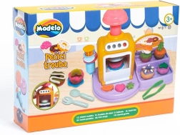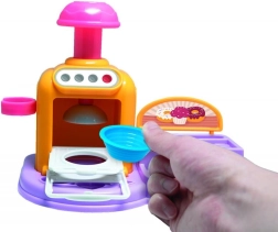 Otevírací dvířka, tlačítka a páčka dělají z pečení zábavný rituál. Vlož dortík, stiskni a sleduj proměnu v hotovou dobrotu z modelíny.