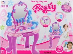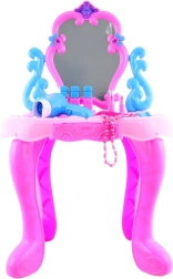 Tento nádherný toaletní stolek je ideální pro všechny malé princezny. Své kouzlo přináší díky funkčnímu fénu a světýlku na vršku zrcadla, které svítí a hraje po vložení baterií. Součástí balení je hřeben, korále, 3 prstýnky, samolepky a další kreativní doplňky.