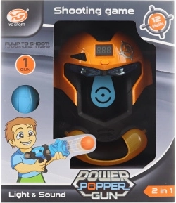 Tato akční sada kombinuje zábavu střelby s tréninkem přesnosti. Terč ve tvaru futuristické masky má digitální počítadlo, které po vložení 2× AA baterií zaznamenává každý zásah a přehrává tóny. Pistole vystřeluje měkké pěnové míčky pomocí ručního pumpování, takže není potřeba žádná další elektronika.