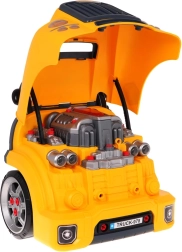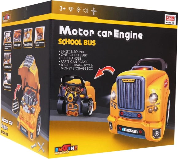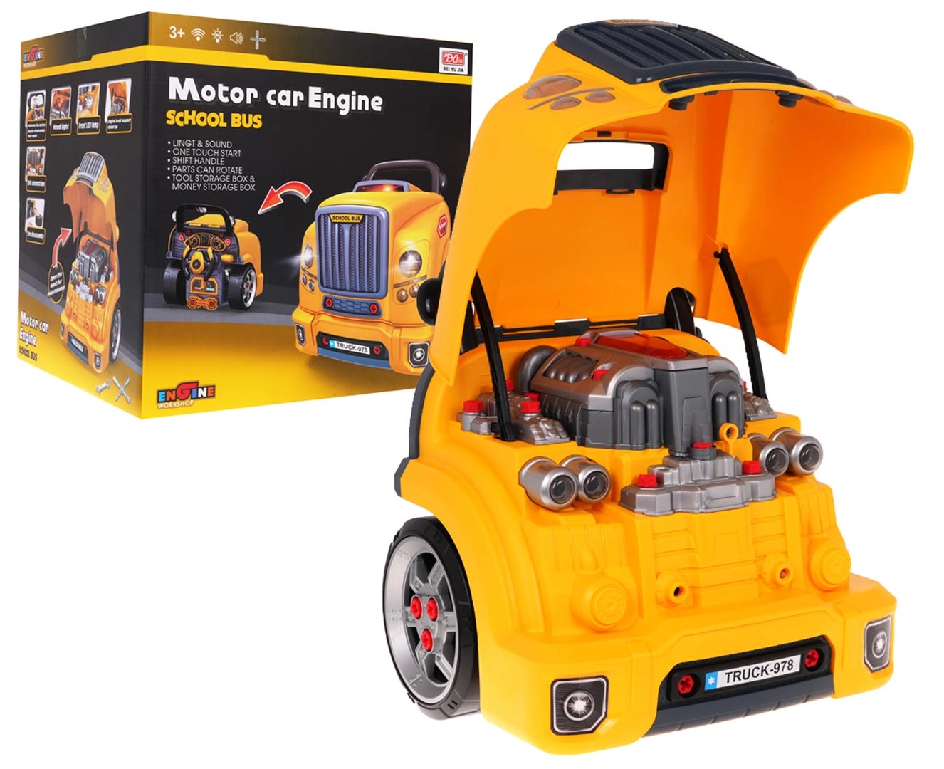 Interaktivní autobus – dílna pro malého mechanika přináší dětem realistický zážitek z opravdové garáže. Přední část vozidla má zvedací kapotu a uvnitř velký rozebíratelný motor, který lze rozložit na jednotlivé části. Na palubní desce najdete tlačítko start/stop se zvukem startování, klakson, nouzový výstražník, řadicí páku a úložný schovávek na nářadí.