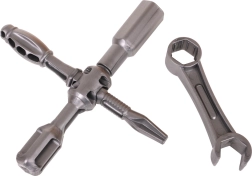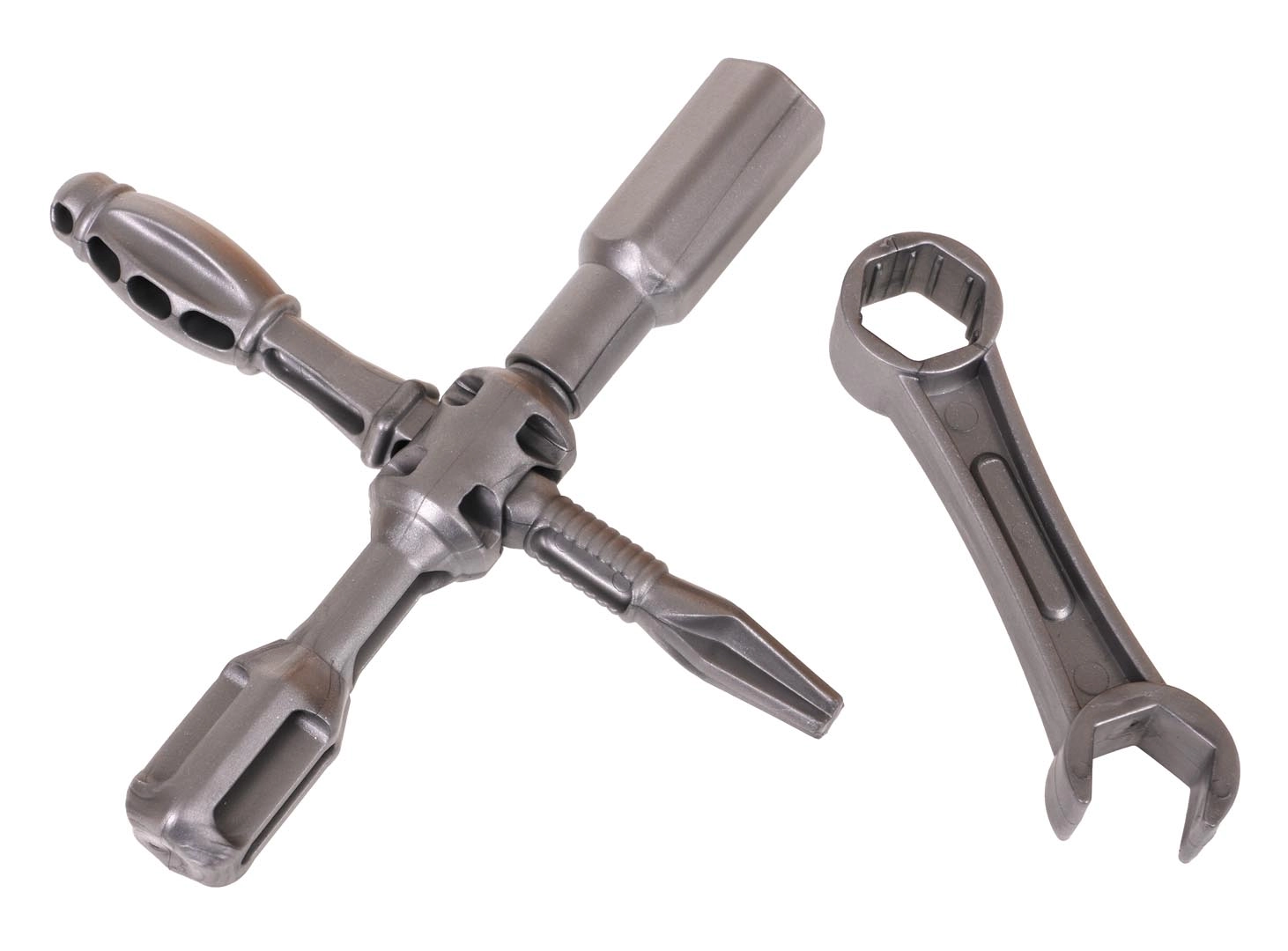 Šroubovák, klíče, šroubky a kola s poklicemi – vše má své místo ve schovávku pod volantem pro přehlednou hru bez nepořádku.