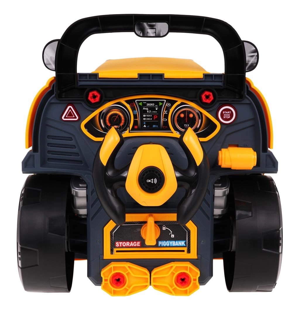 Start/stop tlačítko se zvukem startování, klakson, nouzový výstražník a svítící reflektory vytvářejí realistický zážitek z řízení.
