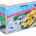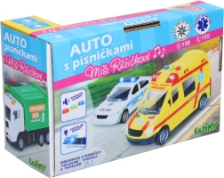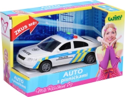 Toto policejní auto je perfektní hračka pro děti od 3 let. Díky setrvačníkovému pohonu je hra s autem zábavná a realistická. Světelné a zvukové efekty, které jsou aktivovány tlačítky na střeše auta, přináší radostnou zábavu a povzbuzují dětskou představivost. Obsahuje tři oblíbené písničky od Míši Růžičkové: Policejní, Sanitka a Popeláři.