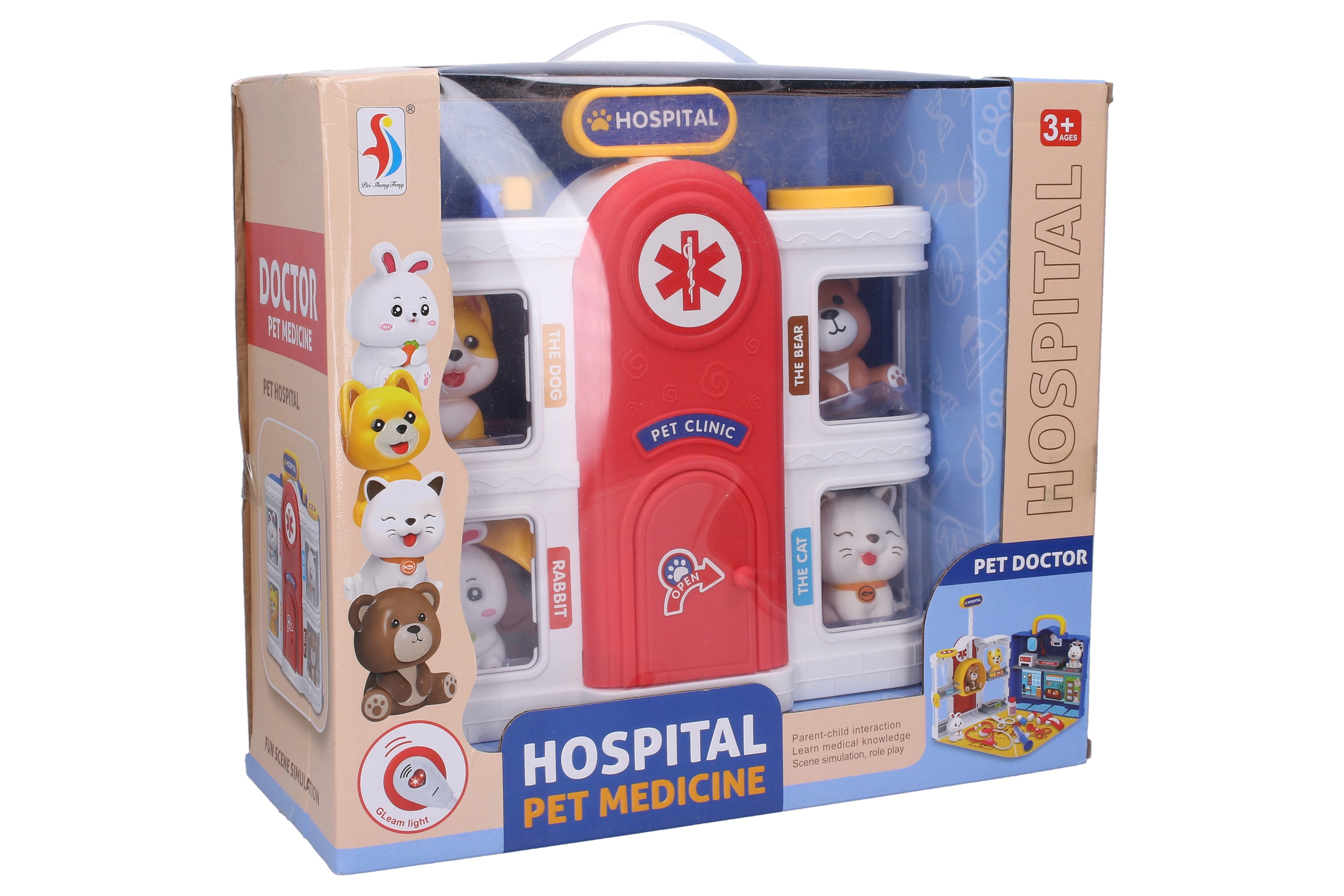 Představujeme Přenosnou zvířecí nemocnici s efekty, která je nezbytnou součástí každého dětského pokoje. Tento herní set nabízí zábavu a vzdělávání současně.