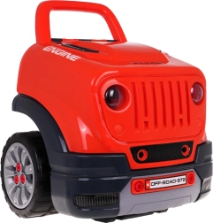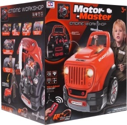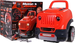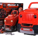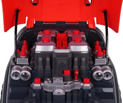 Pod kapotou se skrývá velký motor, který lze pomocí šroubků a nástrojů rozložit a znovu složit. Děti si procvičí jemnou motoriku a pochopí, jak auto funguje.