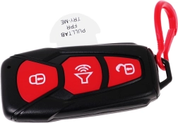 Stylová klíčenka ovládá světlomety a osvětlení motoru a přehrává zvuky zamykání/odemykání i klakson. Baterie CR2025 je součástí balení.