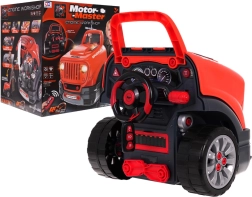 Zábavná a vzdělávací hračka pro děti od 3 let: přední část nákladního auta s výklopnou kapotou, rozebíratelným motorem a realistickou palubní deskou. Dítě si vyzkouší práci malého mechanika – k dispozici jsou nářadí, světelné a zvukové efekty, simulace automatického řazení a dálková klíčenka pro ovládání světel a zvuků. Hračka rozvíjí jemnou motoriku, šikovnost a koordinaci oko–ruka a díky rukojeti se snadno přenáší.