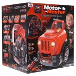 Toto interaktivní nákladní auto promění dětský pokoj v skutečný servis. Pod kapotou se ukrývá velký rozebíratelný motor, který lze pomocí šroubků a nářadí snadno skládat a rozkládat, měnit svíčky i kola. Na palubní desce najdete tlačítko start se zvuky startování, volant s klaksonem a výstražnou signalizaci. Pod volantem je praktický schovávek na nářadí.