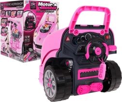 Interaktivní přední část vozidla s přístrojovou deskou a automatickou „řadicí“ pákou nabídne dětem realistický zážitek z řízení i servisu. Po stisknutí startu zazní zvuk nastartování, při jízdě i zpátečce se spouští odpovídající efekty. Pod kapotou se skrývá velký rozebíratelný motor, kde mohou malí mechanici měnit „svíčky“, kola a další komponenty.