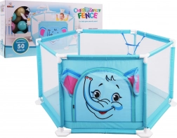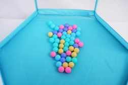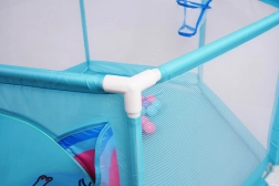 Integrovaný koš uvnitř ohradníku podporuje aktivní hru a rozvoj koordinace. Součástí je 50 barevných míčků.