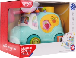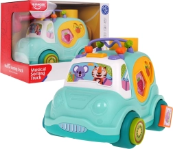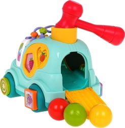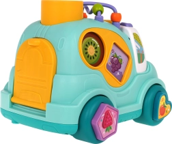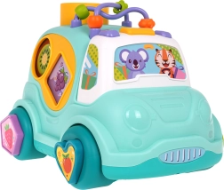 Tento barevný autobus přináší dětem hodiny zábavy a učení v jednom. Po stranách a na kolech najdou děti otvory pro třídění tvarů, na střeše pak vstup pro míčky, které mohou pomocí kladívka s radostí vrážet dovnitř. Míčky mají uvnitř chrastítka, takže hra je ještě zábavnější a smyslově podnětná.