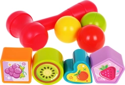 - Bohaté příslušenství: 4 kostky, 3 chrastící míčky a kladívko