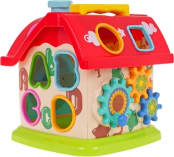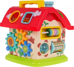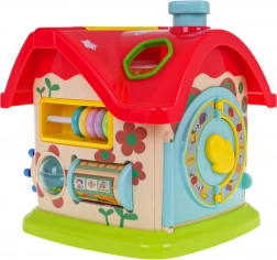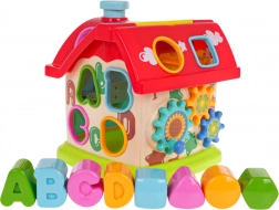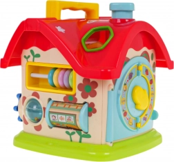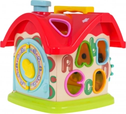 Multifunkční domeček se sortérem je ideální interaktivní hračka pro nejmenší. Díky výrazným barvám a promyšleným aktivitám podporuje koordinaci oko–ruka, rozvoj kognitivních dovedností a učení formou hry. Střechou s otvory pro geometrické tvary, stěnou s výřezy písmen A–D a učícími hodinami děti trénují rozpoznávání tvarů, písmen a času.