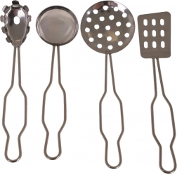 Součástí jsou také kleště, naběračka, obracečka a děrovaná lžíce – vše, co děti potřebují k vaření i servírování.