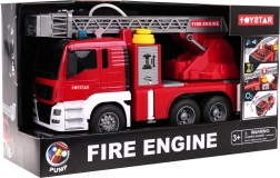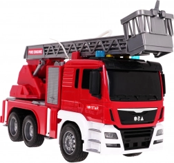 Auto je vyrobené z odolného plastu, má gumové pneumatiky pro lepší přilnavost a třecí pohon pro snadnou jízdu bez baterií. Žebřík s košem lze ručně zvedat, spouštět a vysouvat, výsuvný ramenní výložník se otáčí o 360°. Nechybí boční klapa s přístupem pro hasičskou hadici, 4 výsuvné stabilizační podpěry a otevíratelná klapka u výložníku.