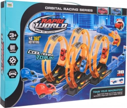 Velké 360° smyčky prověří rychlost i stabilitu. Děti si užijí plynulý průjezd a efektní kaskadérské kousky na bezpečné plastové trati.
