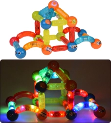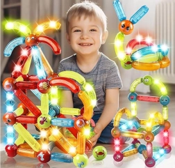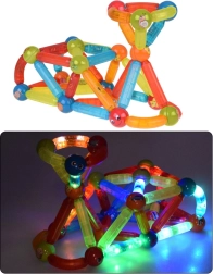 Magnetická stavebnice umožňuje stavění různorodých plochých a trojrozměrných struktur, podporuje kreativní hra a rozvoj motorických a logických dovedností.