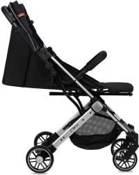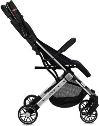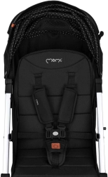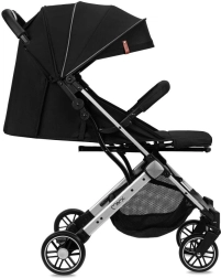 Dítěti poskytne komfort nastavitelná opěrka zad a nastavitelná opěrka nohou s potahem z umělé kůže pro snadné čištění. Rozšiřitelná stříška se dvěma průzory chrání před sluncem a umožňuje kontrolu nad dítětem. Rodiče ocení pohodlné madlo, nožní brzdu, velký spodní koš a spolehlivé bezpečnostní pojistky proti nechtěnému složení či rozložení.