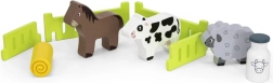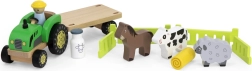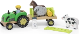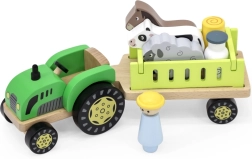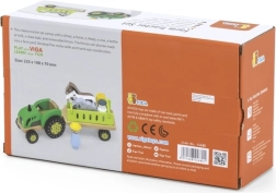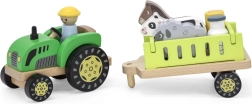 Dřevěný traktor se zvířátkami od renomované značky Viga Toys je ideálním setem pro milovníky zvířat. Tento veselý traktor je vybaven řidičem, koněm, ovcí, kravou, lahví mléka, balem sena a přívěsem s odnímatelnými boky.