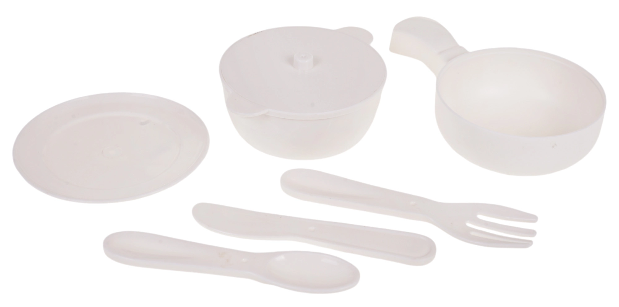 - Příslušenství: talířek, hrnec s pokličkou, pánev, nůž, vidlička, lžička