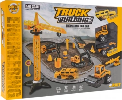 Součástí sady jsou realisticky zpracovaná autíčka s pohyblivými částmi, jako například sklápěč a válcovací vůz, podporující dětskou představivost.