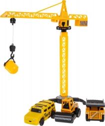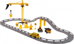 Jeřáb se vyznačuje otočným ramenem o 360° a manuálně ovládaným hákem pro nakládání. Mezi dalšími doplňky jsou různě pohyblivé stavební vozy, jako je sklápěč s polohovatelnou korbou a válcovací vozy s otočnými bubny. Elektrické auto je poháněno baterií typu 1 x AA 1,5 V (baterie nejsou součástí balení).
