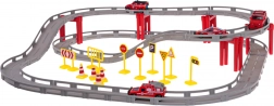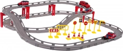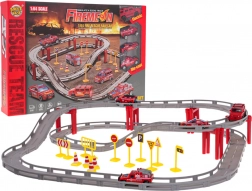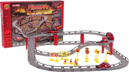 Závodní dráha Hasičská verze je dokonalou hračkou pro malé dobrodruhy. Sada obsahuje početné prvky k simulaci hasičské akce a zážitek z dynamické jízdy, včetně čtyř hasičských vozidel.