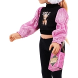 Součástí panenky je módní oblečení, které lze převlékat, a příslušenství jako kabelka a zimní náušníky.