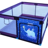 Povrchové materiály se velmi snadno udržují – stačí je otřít a dezinfikovat. Boční stěna s veselým motivem slůněte je vybavena praktickým zipem, takže dítě může do ohrádky pohodlně vlézat a vylézat. Stabilní konstrukce přináší jistotu při každodenním používání.