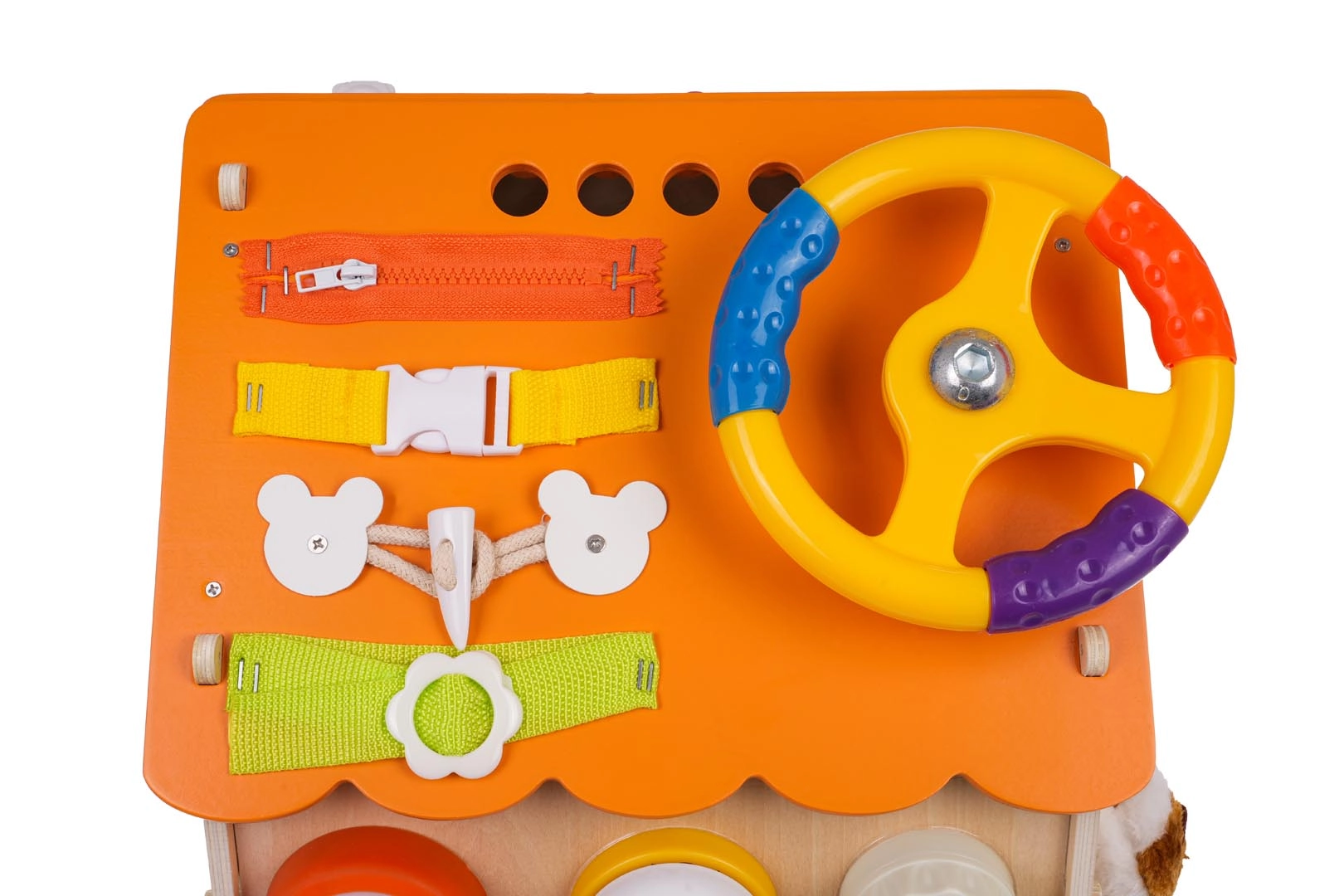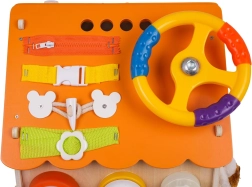 Od zipů a přezek po cimbálky, ozubená kola a zámky – každý panel nabízí novou výzvu pro rozvoj jemné motoriky a logiky.
