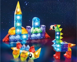 Tato pestrá sada magnetických kostek umožňuje dětem stavět auta, věže, zvířátka i fantazijní konstrukce. Díly z odolného, bezpečného plastu drží pevně díky zabudovaným magnetům a světelné moduly dodají každému výtvoru efektní vzhled. Součástí jsou návody s různými úrovněmi obtížnosti, takže děti postupně rozvíjejí své dovednosti.