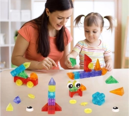Silné magnety v dílcích zajišťují rychlé sestavení a pevnost konstrukcí – ideální pro malé stavitele i začátečníky.
