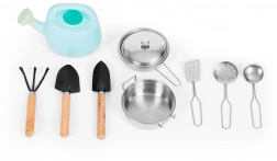 - 10 ks (hrnec, poklice, pánev, špachtle, sítko, naběračka, konev, 3× zahradní náčiní)