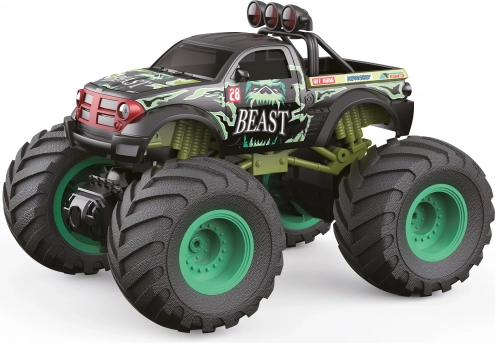 Auto Bigfoot Competition na dálkové ovládání. Velikost 22 cm. Frekvence 2.4 GHz. Rychlost 12 km/h. Pistolový ovladač. USB kabel součástí. Světelné a zvukové efekty. Bateriový pack 3.7V Li-ION 500mAh součástí, 2xAA do ovladače nejsou součástí. Provozní doba až 15 min.