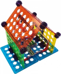 Stavebnice BOFFIN II Můj dům je ideální pro děti od 8 let, které chtějí pochopit principy elektřiny a chytré domácnosti. Základ tvoří děrovaná deska, na kterou se díly jednoduše nacvakávají – bez pájení, bezpečně a s okamžitým výsledkem. Postavíte osvětlení, alarm, dvoupatrový dům, větrný mlýn i party dům a ověříte si funkčnost podle přiložených schémat.