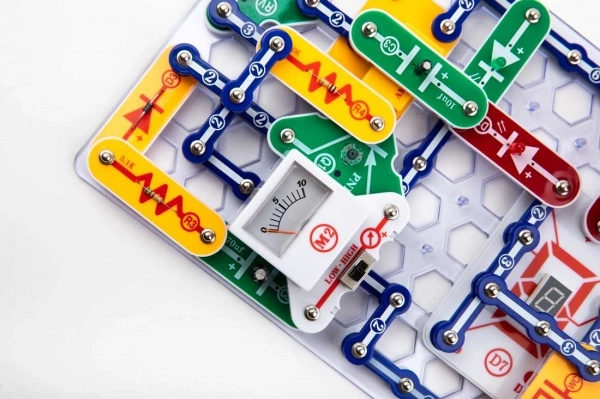 Stavebnice BOFFIN I 500 je komplexní sada pro zábavné učení elektroniky. Jednotlivé díly jednoduše nacvaknete na základní desku a podle návodů postavíte projekty jako FM rádio, telegraf, hlasem a dotykem řízenou hudbu, ptačí zpěv či zvuky sirén. Každý projekt je jasně popsán – co má dělat, jak funguje a jak zkontrolovat výsledek.