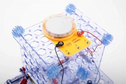 Všechny díly jednoduše zacvaknete do průhledné mřížky. Stavba je rychlá, přehledná a ideální pro první kroky v elektronice.
