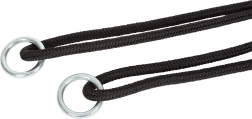 Lana jsou výškově nastavitelná a kovové kroužky umožňují rychlé zavěšení i sundání, díky čemuž je houpačka praktická a snadno použitelná.
