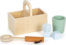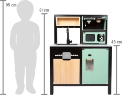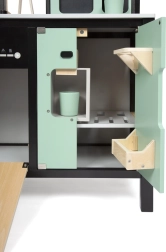 Kvalitní dřevěné zpracování, otevírací dvířka a množství poliček a přihrádek udrží pořádek v každé kuchyni. Děti si procvičí organizaci, jemnou motoriku i sociální dovednosti.