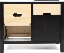 Elegantní kombinace černého rámu a přírodního dřeva dodá dětskému pokojíčku moderní nádech. Samostatný ostrůvek lze připojit ke kuchyňce a vytvořit rohové řešení – flexibilní hrací prostor na míru.