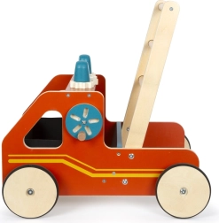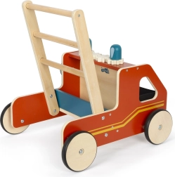 Stylové dřevěné chodítko hasiči od značky SMALL FOOT podpoří první krůčky s robustní konstrukcí, brzdovým systémem a tichými pogumovanými koly. Interaktivní prvky jako ozubená kola, otočné kolo s klikou a pohyblivá světla rozvíjejí motoriku i koordinaci, zatímco vyjímatelný plstěný (filcový) koš nabízí praktické uložení pokladů.
