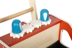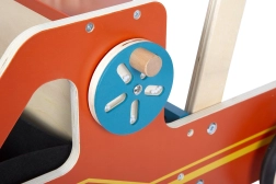 O zábavu a rozvoj jemné motoriky se starají funkční detaily: ozubená kola, otočné kolo s klikou a pohyblivá modrá světla. Vyjímatelný plstěný (filcový) koš poslouží jako úložný prostor na hračky a drobnosti, aby byl každý zásah rychlý a organizovaný.