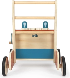 Pevná dřevěná konstrukce a integrovaný brzdový systém dávají dětem jistotu při chůzi i při rychlejší jízdě. Čtyři široká kola zajišťují stabilitu na různých površích.
