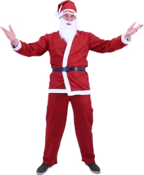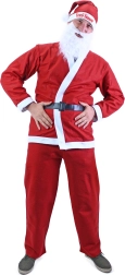 Tento kostým zahrnuje všechno, co potřebujete pro klasický Santův vzhled - kabátek, kalhoty, čepici a opasek.
